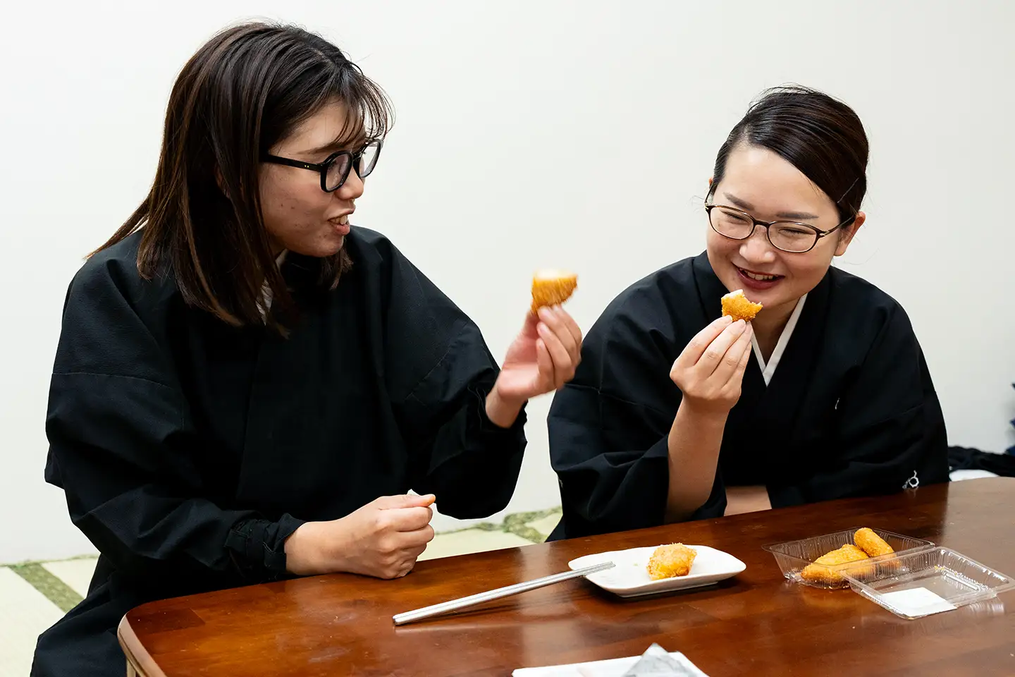 竹本友里希(写真左)「うずのくにと人形座の意思疎通をしやすくし、運営をスムーズに回すために、社長と年齢や感覚が近い若手の中から千紅を登用したのかな、と感じています。私は企画・広報担当。SNSのバズりを途切れさせてはいけないと、プレッシャーを感じる日々です(笑)。他にお稽古の差配をする技芸部長に三味線奏者の鶴澤友勇(つるざわともゆう)、物販担当に人形遣いの吉田廣の助(よしだひろのすけ)などが就きました」