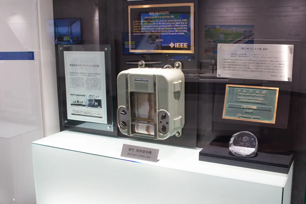 ところで、フルノはどんな会社なのか。1948年に世界で初めて魚群探知機(以下、魚探・ぎょたん)の実用化に成功した舶用機器メーカー。1938年に創業後、船舶の電気工事などを行っていた戦後のある日、創業者の古野清孝氏が一人の漁師の「魚のいるところには泡が出る」という言葉をきっかけに、「海の中が見えたらどんなにすばらしかろう」と興味を持って、超音波で魚の群れを映像で見える魚探の開発を始めた。清孝氏はときに漁師と一緒に船に乗って漁に出て、現場の状況や声を製品開発に生かし、漁師との関係性も築いていった。
