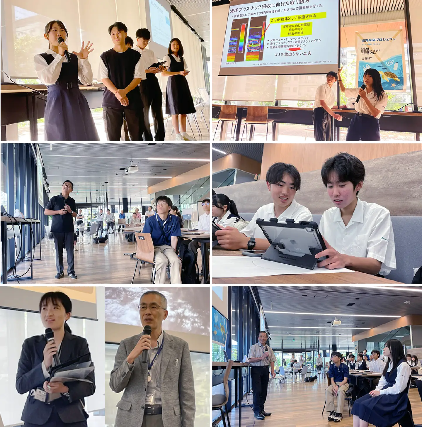清水:大枠の企画や進行は高校生たちが主体的に行っています。当社の研究開発棟に集まって、海洋プラスチック課題についての大学や行政、当社の取り組みを学んだり、学生同士で議論したり、大型水槽で実習実験をしたりします。3年目ですが、毎回プログラムをブラッシュアップし、指導を担当する技術者たちもどういう伝え方をすれば高校生に届くのか、楽しんでもらえるのかと工夫を重ね、本気で取り組んでいます。ある技術者は、8時開始なのに6時半に来て準備するほど!高校生の柔軟な発想に驚きや気づきがあると、毎回刺激を受けているとのこと。担当している私も、高校生のがんばる姿に「母のような目線」で成長を応援しています。