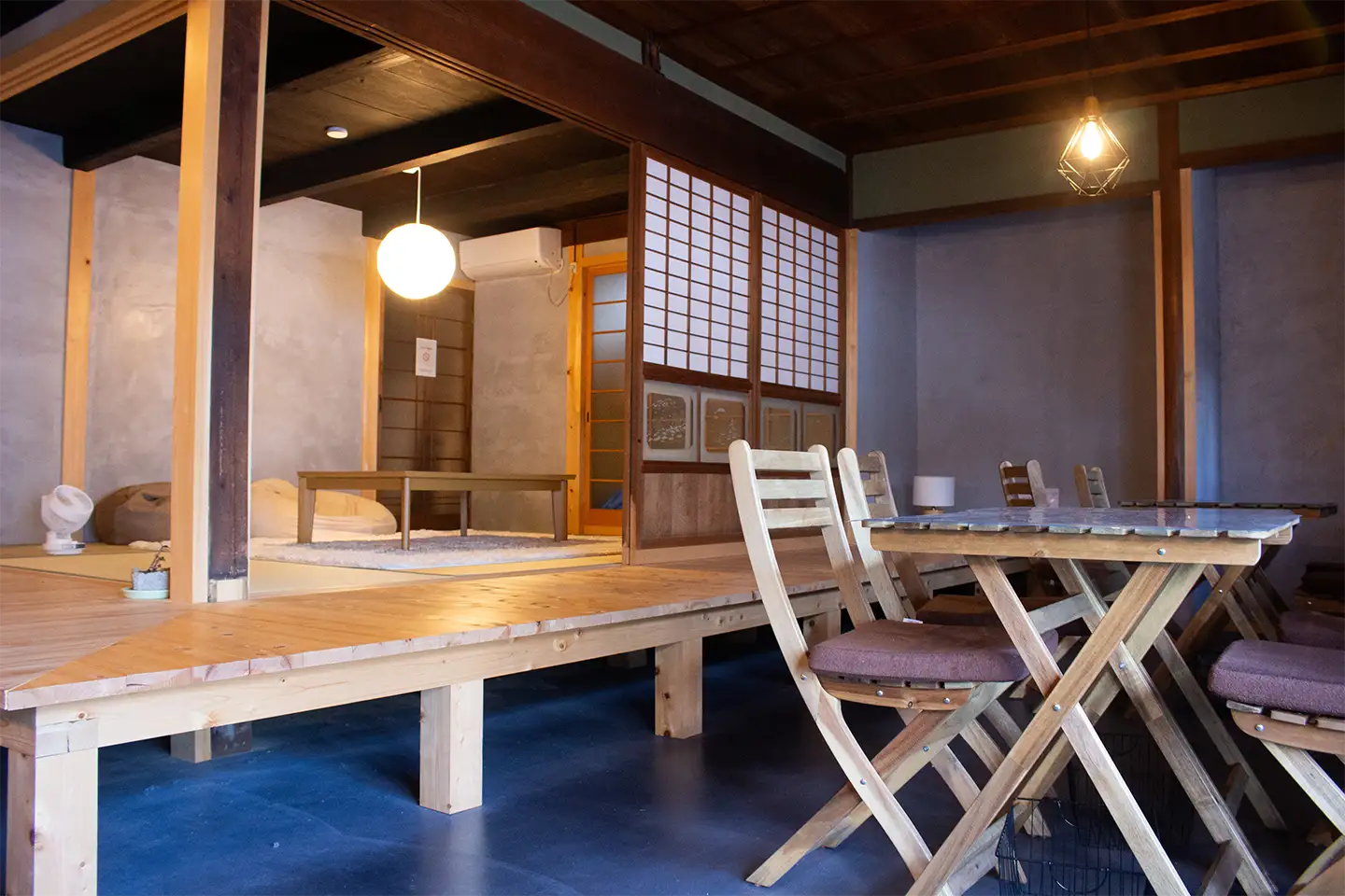 まずは特産品の流通・売上拡大のため、「エアレーベン八千代」を改装し、固定資産を町へ寄付したのが最初です。次は空き家を活用し、町に興味を持つ人が滞在できるよう、宿泊施設「Kaji家」をオープン。今は多可町の農家さんが直接アテンドしてくれる農業体験ツアー参加者などの利用が多いです。そこから本格的に多可町での就農を考える人が数ヵ月単位で滞在することも可能です。1階には短期で飲食店などをオープンできるチャレンジショップスペースを備えていて、移住を検討する段階でお試し事業をしてもらうこともできます。移住のきっかけってタイミングや小さな縁だと思うんです。でも事前に地域との関係性が作れていたらぐんと移住のハードルは下がる。RAKUはその「場」が提供できたらいいなと思っています。