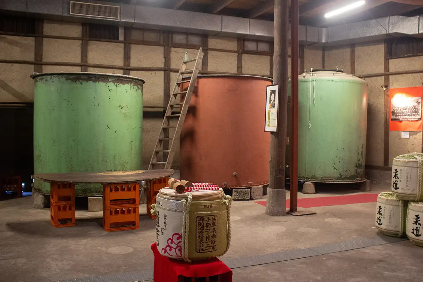 酒蔵ミュージアムに展示されている、かつて灘菊で使用していたタンク